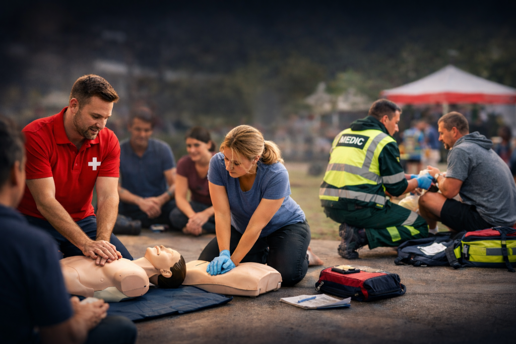 Professional first aid and medical cover for events including festivals, sports events, charity events, and community gatherings.